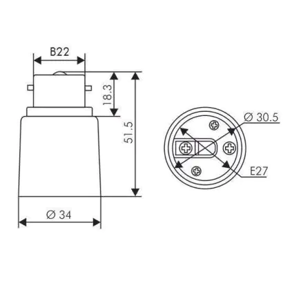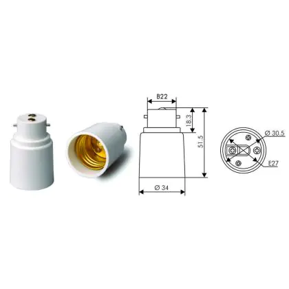 Adapter for lampholders B22 => E27 White