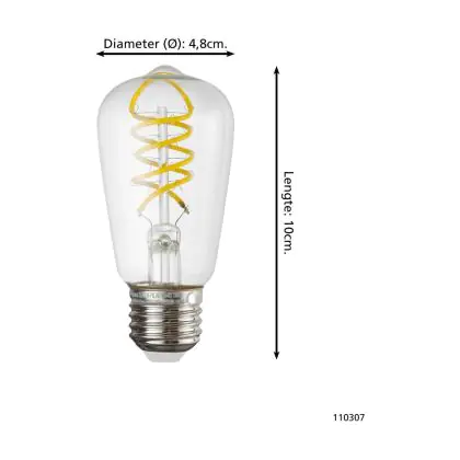 Eglo LED E27 Edison Clear Filament 7.3W 806lm - 827 Extra Warm White | Replaces 60W
