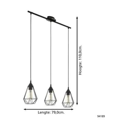 Eglo Pendant Tarbes Steel Black | IP20 - Suitable for 3x E27