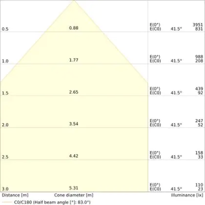 ![]() The colour code is a combination of colour rendering (CRI) and light colour (Kelvin). The first number indicates the colour rendering (1 = very poor colour rendering, 9 = maximum colour fastness). The second and third number contains the light colour. Example: the colour code 830 consists of good colour rendering (8) and warm white light (3000K). |