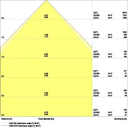 ![]() The colour code is a combination of colour rendering (CRI) and light colour (Kelvin). The first number indicates the colour rendering (1 = very poor colour rendering, 9 = maximum colour fastness). The second and third number contains the light colour. Example: the colour code 830 consists of good colour rendering (8) and warm white light (3000K). |