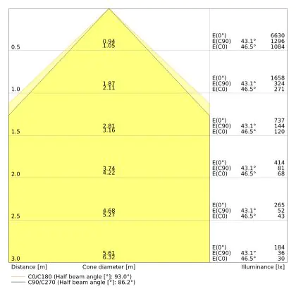 ![]() The colour code is a combination of colour rendering (CRI) and light colour (Kelvin). The first number indicates the colour rendering (1 = very poor colour rendering, 9 = maximum colour fastness). The second and third number contains the light colour. Example: the colour code 830 consists of good colour rendering (8) and warm white light (3000K). |