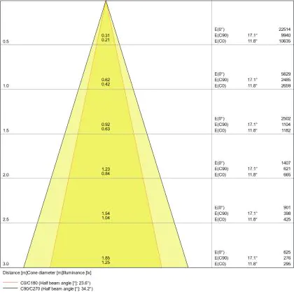 ![]() The colour code is a combination of colour rendering (CRI) and light colour (Kelvin). The first number indicates the colour rendering (1 = very poor colour rendering, 9 = maximum colour fastness). The second and third number contains the light colour. Example: the colour code 830 consists of good colour rendering (8) and warm white light (3000K). |