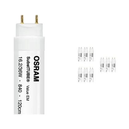 Multipack 10x Osram SubstiTUBE LED T8 Value (EM Mains) Standard Output 16.2W 1700lm - 840 Cool White | 120cm - Replaces 36W