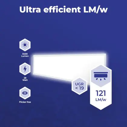 The Luminous Efficacy (lm/W) indicates how efficiently a light source uses energy. We divide the number of lumens by the wattage. The higher the number, the more efficient a product is in terms of energy consumption. LED lighting has a considerably higher lumen/Watt ratio than conventional lighting.