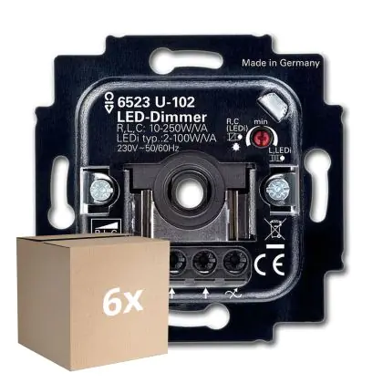 Multipack 6x Busch-Jaeger 6523U-102 Rotary LED Dimmer 6512-0-0334 2W -100W 50/60Hz