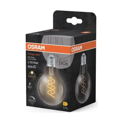 Osram Vintage 1906 LED E27 Globe Filament Twist Clear 7.2W 806lm - 927 Extra Warm White | Best Colour Rendering - Dimmable - Replaces 60W