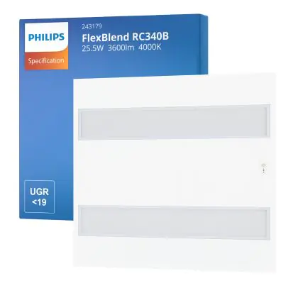 Philips LED Panel FlexBlend RC340B White 25.5W 3600lm - 940 Cool White | 60x60cm - UGR <19 - Best Colour Rendering - Motion and Light Sensor